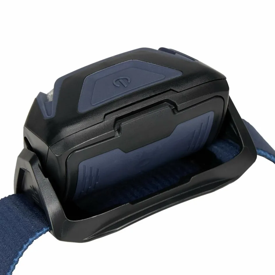 Der Lampenkopf ist vertikal schwenkbar und rastet in der gewünschten Position ein. Der große Schalter sitzt auf der Oberseite des Gehäuses und ermöglicht dir die Bedienung auch mit Handschuhen. Zum Lieferumfang gehört ein Packbeutel, den du als Lampensack verwenden kannst. So sparst du eine separate Zeltlaterne im Gepäck.