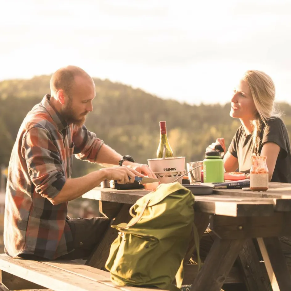 Der Kocher ist im Windschutz integriert und ist somit schnell einsatzbereit. Einfach aufstellen, Gaskartusche anschrauben und los geht das Vergnügen. Auf dem Windschutz stehen die Töpfe sicher und kippstabil.