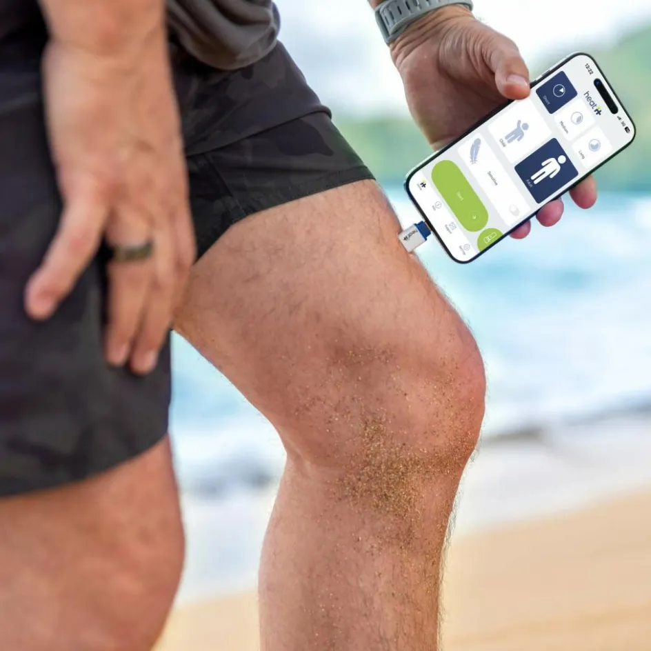 Steckst du den Heat it in den Ladeanschluss deines Handys, öffnet sich automatisch die Heat-it-App. Die App ist kostenlos für Apple und Android erhältlich und intuitiv bedienbar. Sie bietet dir 12 verschiedene Behandlungsoptionen, darunter auch spezielle Einstellungen für Kinder und empfindliche Hautstellen.