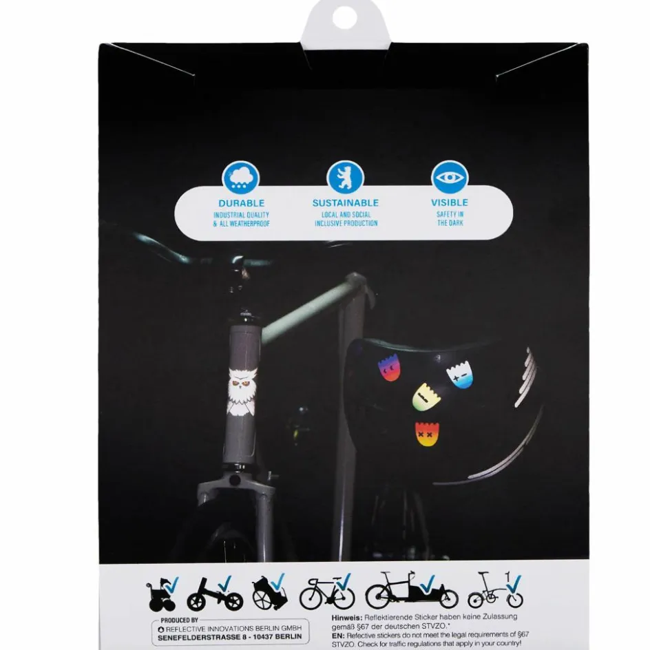 Mit der Möwe kannst du alle glatten Flächen verzieren, ob Lauf- oder Rennrad, Kinderwagen oder Rollstuhl. Auch auf deinem Helm macht sich die nackte Möwe gut. Die Strahlkraft des Materials is dabei typisch Reflective Berlin: stark und lange haltbar!