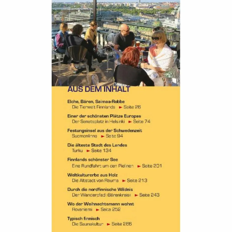 Auch die Westküste mit ihren langen Sandstränden, einer einzigartigen Schärenlandschaft und malerischen kleinen Städtchen lohnt einen Besuch. Burgen, alte Holzhausviertel und viele Freilichtmuseen laden zu Ausflügen in die finnische Geschichte ein, die lebhafte Hauptstadt Helsinki zu Architektur-Spaziergängen und Shoppingtouren im Designviertel.Dieser Reiseführer begleitet Finnland-Reisende mit vielen Hintergrundinformationen und aktuellen Reisetipps in alle Regionen des Landes. Extra-Kapitel geben Einblicke in die finnische Lebensart.