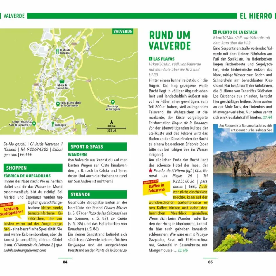 Zwischen Strand und Berg warten unvergessliche Erinnerungen Hier steht Traumurlaub auf dem Programm: Löffle Kressesuppe in der Einsiedelei El Edro mitten im Lorbeerwald, tauche ab in geheimnisvolle Lavagrotten vor La Restinga oder entspann dich im kristallklaren Meerwasser, während sich die Wellen an den natürlichen Lavamauern brechen. Mit den Tipps in deinem MARCO POLO Reiseführer La Gomera & El Hierro stellst du dir eine Reise ganz nach deinem Geschmack zusammen und erlebst einzigartige Insel-Momente – fernab der touristischen Hotspots!