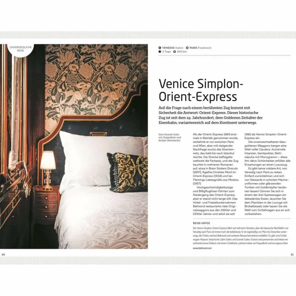 - Mit Doppelseiten zu außergewöhnlichen Zügen , wie dem Jacobite Steam Train oder dem Orient Express