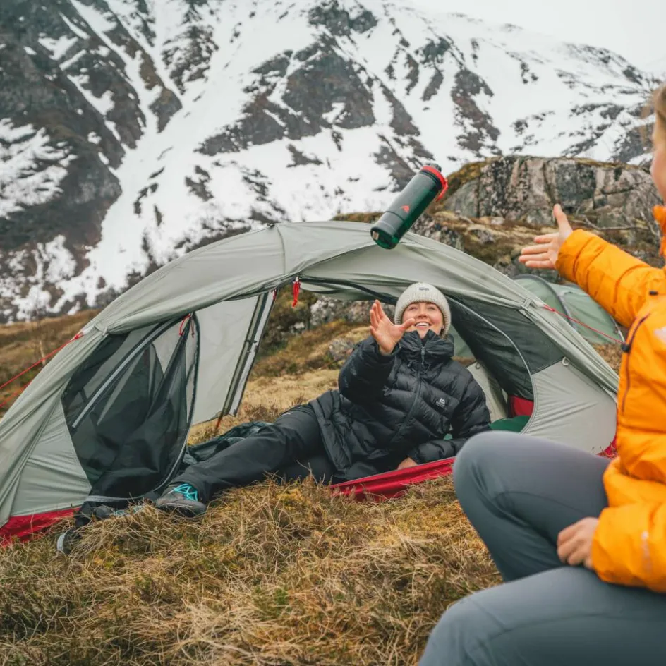 Mit einer Innenzeltbreite von 170/140 cm bietet es zwei bis drei Personen ausreichend Platz zum Schlafen. Seid ihr nur zu zweit unterwegs, bleibt viel Raum für eure Ausrüstung. Alternativ findet diese in den beiden Apsiden Platz. Eine große Mesh-Tasche und zwei Seitentaschen bieten praktischen Stauraum für Utensilien, während du auf der integrierten Wäscheleine feuchte Kleidung zum Trocknen aufhängen kannst.