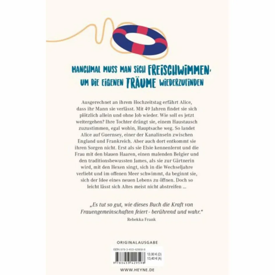 Ist es möglich, mitten im Leben noch einmal die Richtung zu ändern? Wie soll das funktionieren? Und was erwartet sie eigentlich von der zweiten Hälfte ihres Lebens? Alice wagt sprichwörtlich den Sprung ins kalte Wasser: Auf Guernsey wird sie zur Freischwimmerin im offenen Meer. Und sie lernt Menschen kennen, aus deren Freundschaft sie Kraft, Zuversicht und neue Möglichkeiten schöpft.