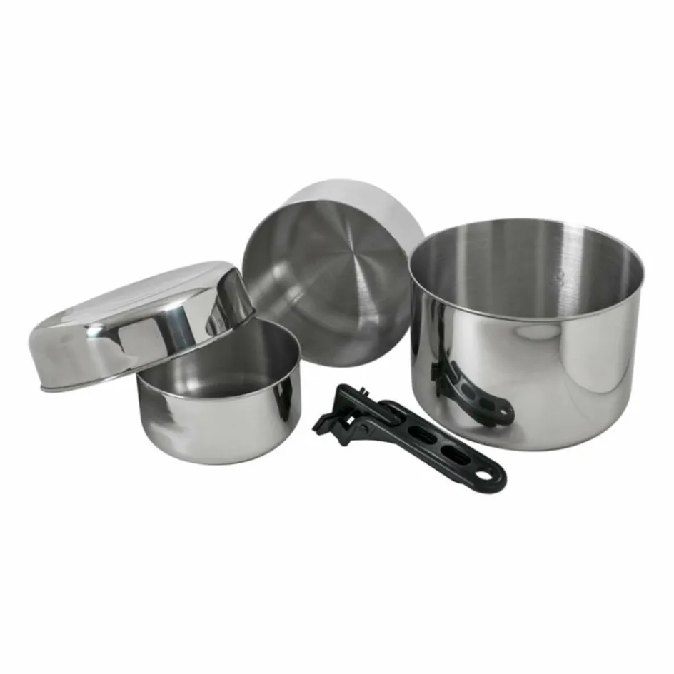 Ein Topfset passend für 3-4 Personen. Das Biwak-Set ist mit seinen 3 Töpfen und der Pfannen-Deckel-Kombination dafür ausreichend dimensioniert.