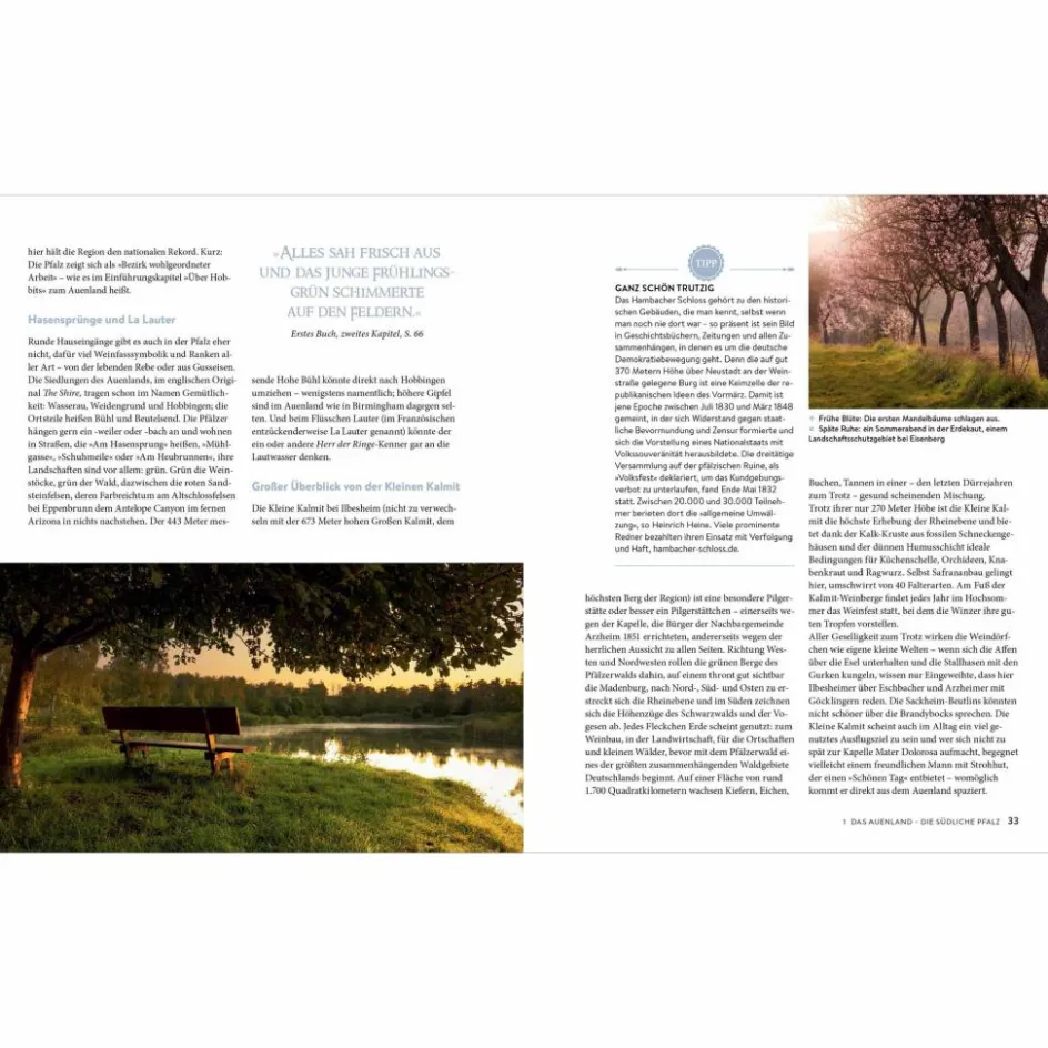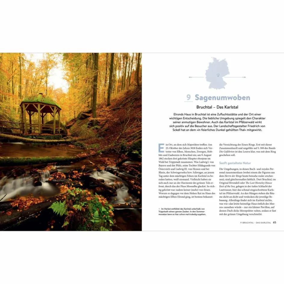 So lieblich wie das Auenland, so wild wie Rohans Pferdeweiden, so betörend wie Lothlorien – die Landschaften aus dem Klassiker »Der Herr der Ringe« von J.R.R. Tolkien finden sich auch ein Deutschland. Das Buch »Deutschland für Herr der Ringe Fans« spürt zwischen Rügen und der Pfalz und von Sylt bis zum Watzmann dem Zauber der Weltliteratur und ihrer genialen Verfilmung nach. Entdecken Sie die fantastischen Welten von Mittelerde vor der Haustür!