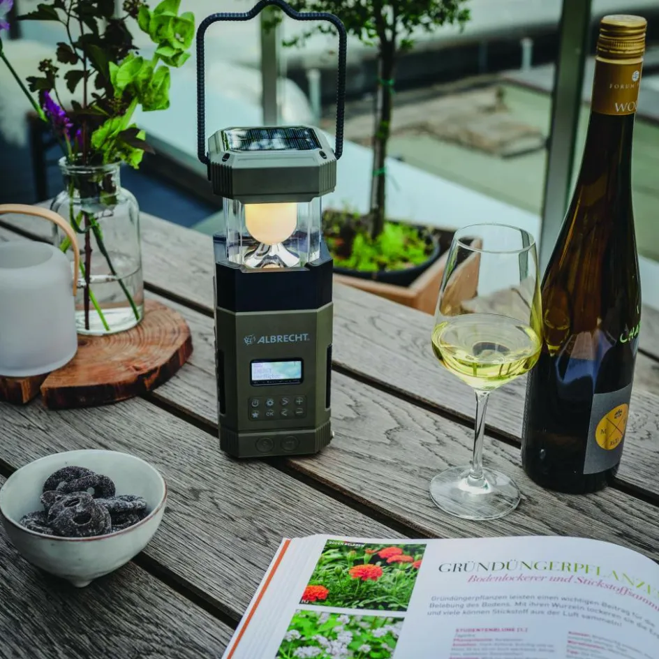 UKW und DAB+ Radio mit integriertem Akku, der per Handkurbel, Solarpanel oder USB-Anschluss geladen werden kann. Eine Laterne und Powerbankfunktion sind ebenfalls an Bord.