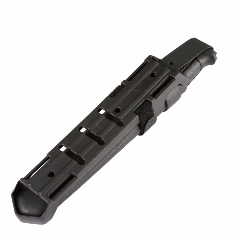 Die Multi-Mount-Scheide ist ebenfalls ein Paradebeispiel für Funktionalität und Vielseitigkeit: Die mehrteilige Scheide aus Köcher, Grundplatte, (Gürtel-)Schlaufe und Klettriemen erlaubt es, das Garberg beinahe überall zu fixieren und immer griffbereit zu haben. Dazu gehört die Befestigung am Gürtel (mit oder ohne zusätzlicher Beinschlaufe), am Rucksack (auch MOLLE-tauglich), oder verschraubt im Boot etc.