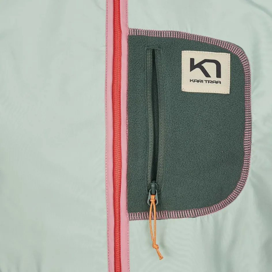 Gefertigt ist die Fleecejacke aus recyceltem Polyester. Die Kunstfaser hält dich angenehm warm und sorgt durch die feuchtigkeitsleitenden Eigenschaften dafür, dass du schnell wieder ein trockenes Tragegefühl genießt. Im Brustbereich trumpft die Fleecejacke mit ihrer wind- und wasserabweisenden DWR-Imprägnierung (PFC-frei) auf. Damit bietet sie dir auch exzellente Fähigkeiten, wenn du die Henriette Jacke bei mildem Wetter als Außenschicht trägst.
