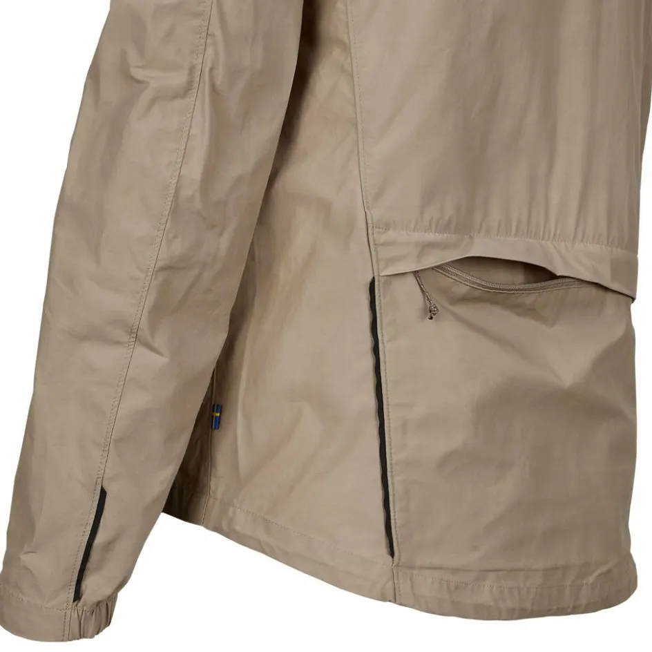 Die Hoja Rider’s Wind Jacket M ist aus wind- und wasserabweisendem HC-Lite gefertigt. Die Funktion des Materials kannst du beeinflussen, indem du zusätzlich Fjällräven-Wachs einarbeitest. Das erhöht die wind- und wasserabweisende Funktion des Windbreakers.