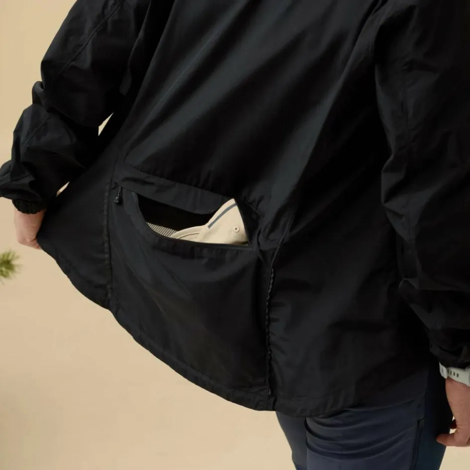 Für Stauraum ist ebenfalls gesorgt: In insgesamt fünf Taschen der Hoja Rider’s Wind Jacket W bekommst du einiges unter, vom Energieriegel über dein Smartphone bis zum Schlüssel. Vorne hast du zwei RV-Schubtaschen und zwei Brusttaschen mit Zugriff von oben; die eine mit RV, die andere mit Druckknopf. Am Rücken hast du zudem eine Tasche mit Zwei-Wege-RV. Reichlich Platz für deine Bike-Touren! Wenn du die Hoja Rider’s Wind Jacket W nicht benötigst, lässt sie sich kompakt in eine der Brusttaschen verpacken.