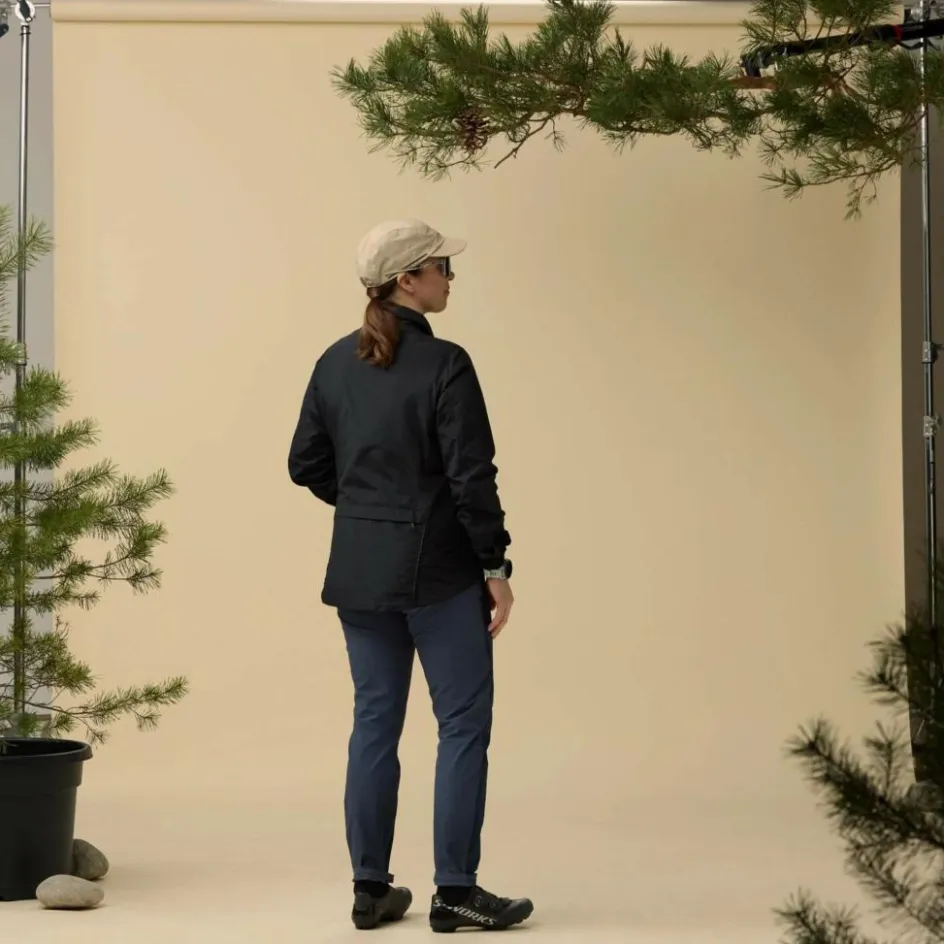 Leichter, kompakt verpackbarer Windbreaker; die Jacke passt in die eigene Brusttasche. So passt die Hoja Rider’s Wind Jacket W unauffällig ins Radgepäck und ist im Falle des Falles schnell am Start.