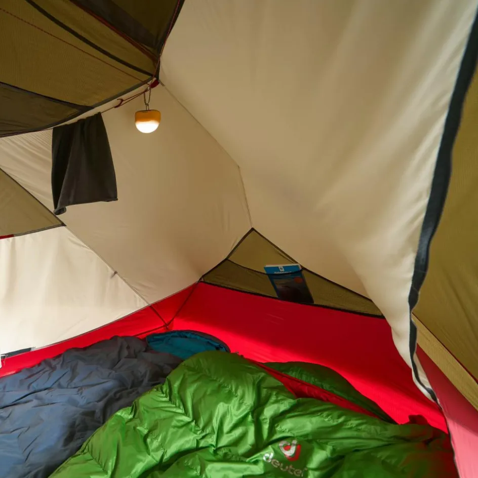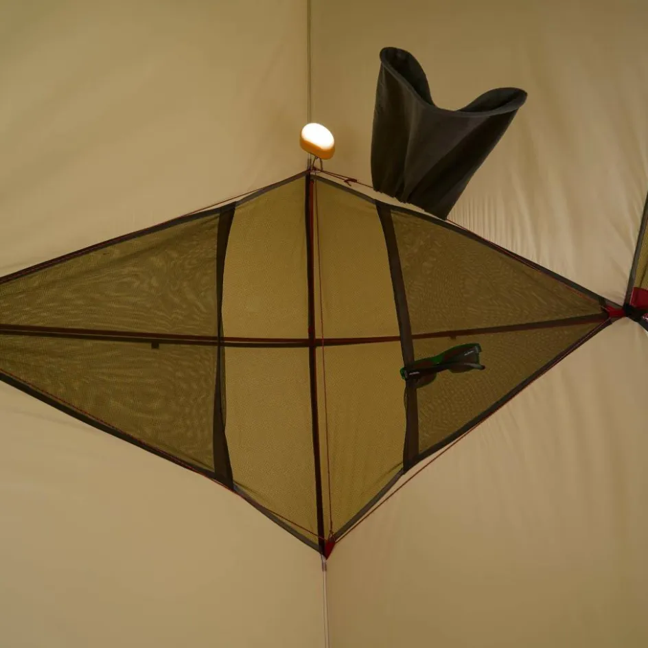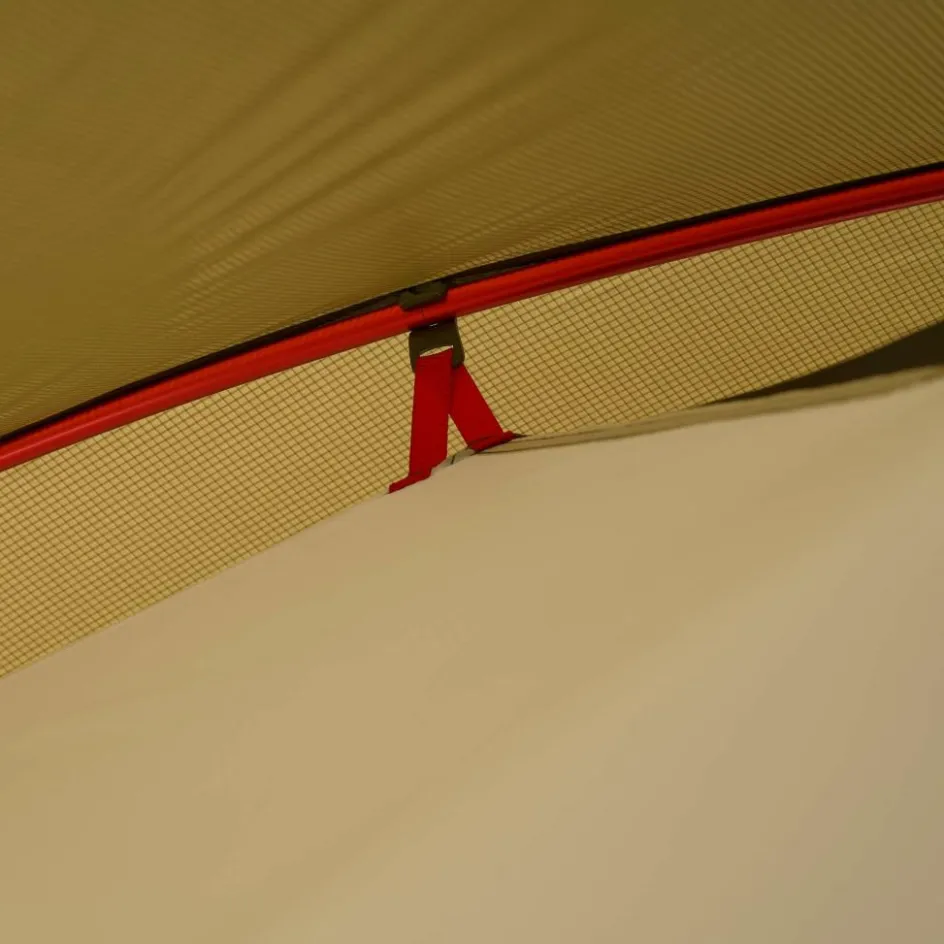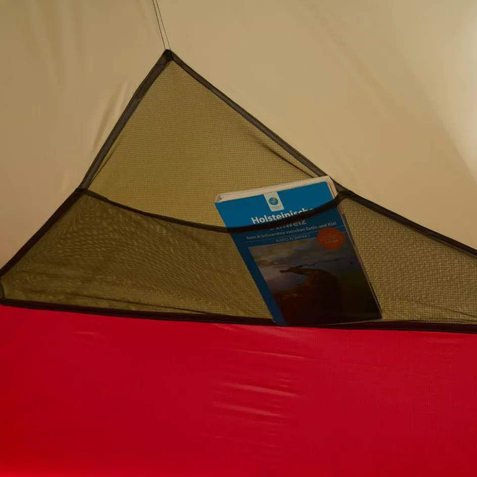 Das Innenzelt bietet dank des Querbogens viel Platz und eine Innenhöhe von 97 cm, was das Sitzen erleichtert. Die A-förmigen Gestängeenden sorgen für steile Zeltwände im Fuß- und Kopfbereich, wodurch vier Netztaschen für eine bessere Organisation zur Verfügung stehen. Zwei Seitentaschen und zwei Deckentaschen bieten Platz für Ausrüstungsgegenstände, während in der Zeltdecke mehrere gespannte Wäscheleinen das Trocknen feuchter Kleidung ermöglichen.