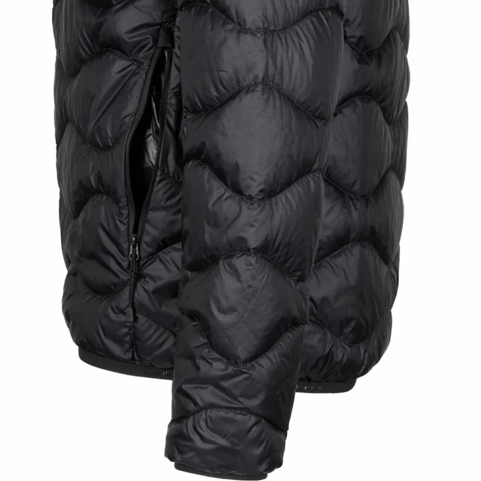 Elastische Bündchen an den Ärmelabschlüssen und am Saum verbessern den Sitz und halten die Wärme im Innern. Mit ihrem geringen Gewicht (300 g) und ohne dick aufzutragen trägt sich die Jacke auch unter einer Wetterschutz-Jacke sehr angenehm. An trockenen, kühlen Tagen ist sie perfekt und sehr stilvoll auch als äußere Lage. Und auch mit ihrem kleinen Packmaß weiß die Down Hood Jacket zu überzeugen und nimmt im Gepäck nur wenig Platz ein.
