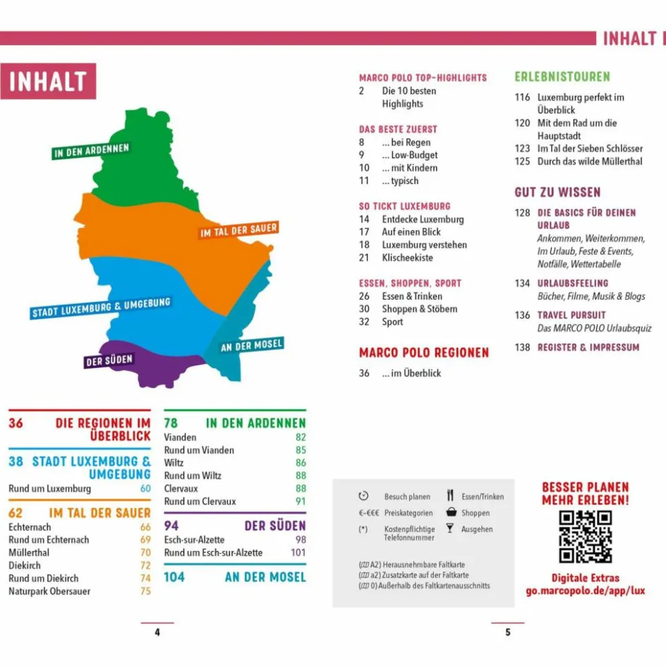 Ob entspannte Wanderung durch die wildromantische Landschaft der Ardennen, Sightseeing im hippen Bankenviertel der Hauptstadt oder Shoppen auf den Prachtstraßen von Luxemburg Stadt: In Luxemburg trifft internationales Flair auf eindrucksvolle Natur. So erlebst du in deinem Urlaub an jedem Tag etwas anderes. Mit deinem MARCO POLO Reiseführer Luxemburg entgeht dir kein Highlight auf deiner Reise durch das vielseitige Land!