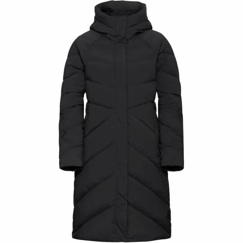 Das moderne Steppmuster unterstreicht den leicht taillierten Schnitt und sorgt für eine figurbetonte Silhouette. Die hochbauschige Füllung aus zertifizierten Daunen hält dich zuverlässig warm. Innenbündchen an den Ärmeln und ein hoher Kragen mit anschließender Kapuze tragen zusätzlich dazu bei, die Körperwärme zu bewahren. Außen schützt dich das atmungsaktive Material vor Wind und leichtem Niederschlag. Durch den elastischen Anteil im Gewebe und 2-Wege-Reißverschluss bleibt der Mantel dabei besonders bequem und passt sich deinen Bewegungen an – ideal für den Einsatz im winterlichen Alltag.