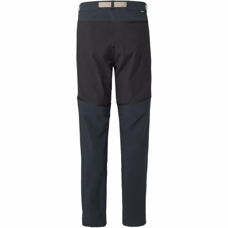 Der integrierte Gürtel lässt sich stufenlos auf die passende Weite einstellen und verfügt über eine flache Kunststoff-Schnalle, die unter einem Rucksack nicht stört. Vier Reißverschluss-Taschen bieten Platz für diverse Kleinigkeiten, die du schnell erreichen, aber auch sicher verwahren möchtest. Umweltfreundlich ist die Softshellhose natürlich auch: Das verwendete Polyester ist komplett recycelt, die Hose gehört zu Vaudes nachhaltiger Green Shape-Kollektion. Bei der Herstellung wurde somit auf Umweltfreundlichkeit und nachhaltige Materialien Wert gelegt.