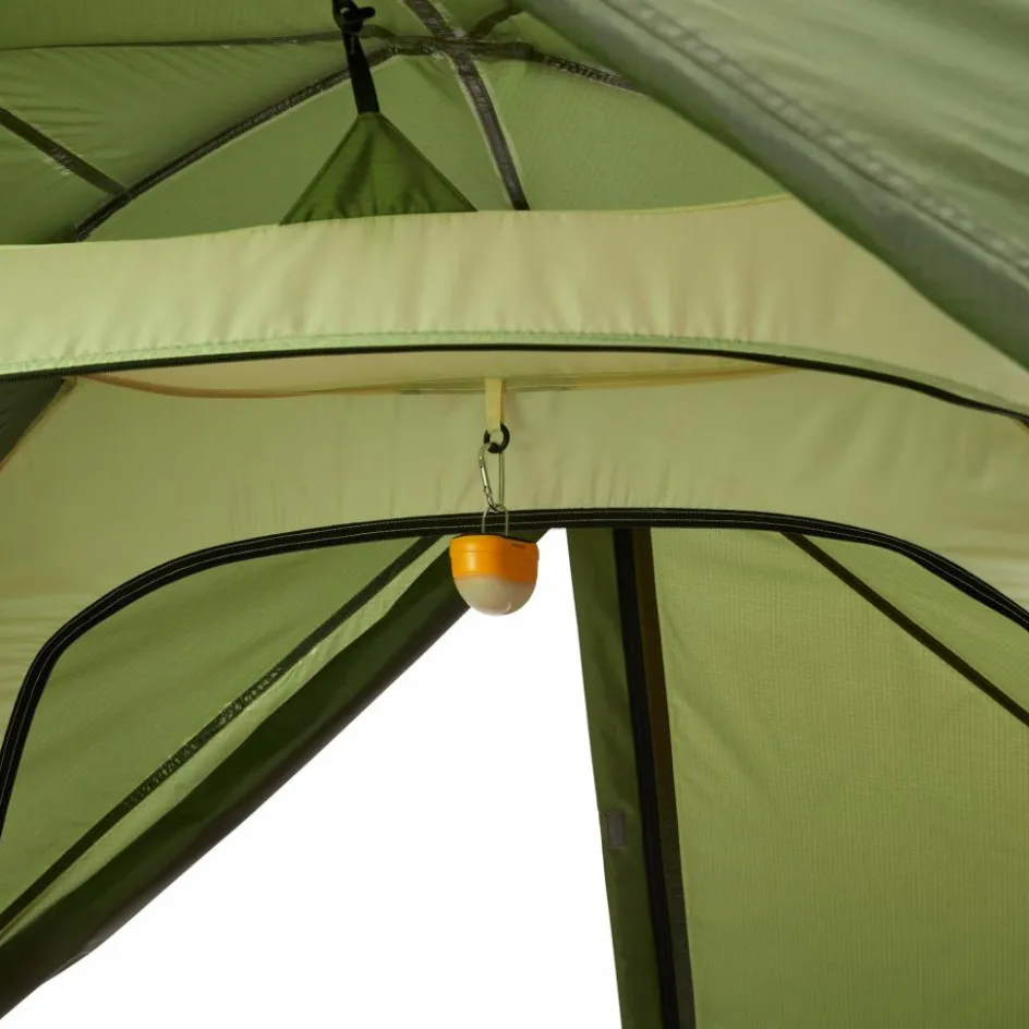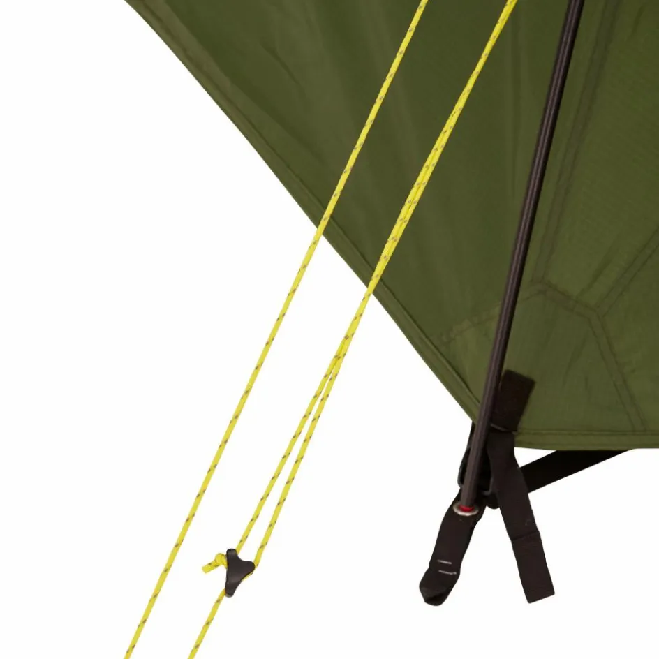Die beiden Apsiden bieten ausreichend Platz für eure Rucksäcke und anderes Equipment. Sie ist durch die Querstange weit aufgespannt. Durch die zwei Eingänge und Apsiden kannst du die Ausrüstung separat organisieren und das Zelt jederzeit zur wetterabgewandten Seite verlassen. Die Eingänge können zur Hälfte oder komplett geöffnet werden, was dir aus dem Zelt heraus einen schönen Panoramablick in die Landschaft ermöglicht.