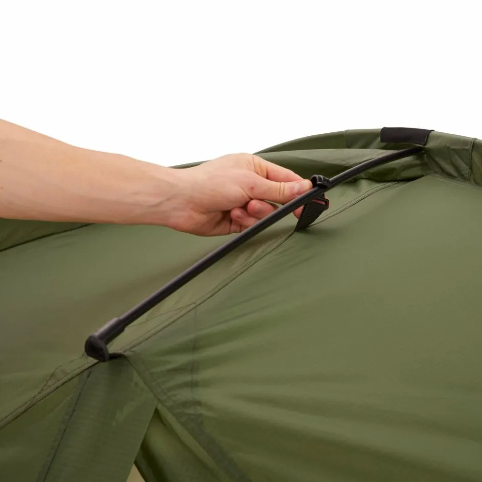 Das Kuppelzelt ist dank der einfachen Konstruktion schnell aufgebaut und steht mit nur zwei Heringen. Da das Innenzelt mit dem Außenzelt gleichzeitig aufgebaut werden kann, ist auch ein Aufbau im Regen möglich, ohne dass das Innenzelt nass wird. Die Konstruktion wie auch das Aluminiumgestänge sind robust und halten auch kräftigem Wind stand.
