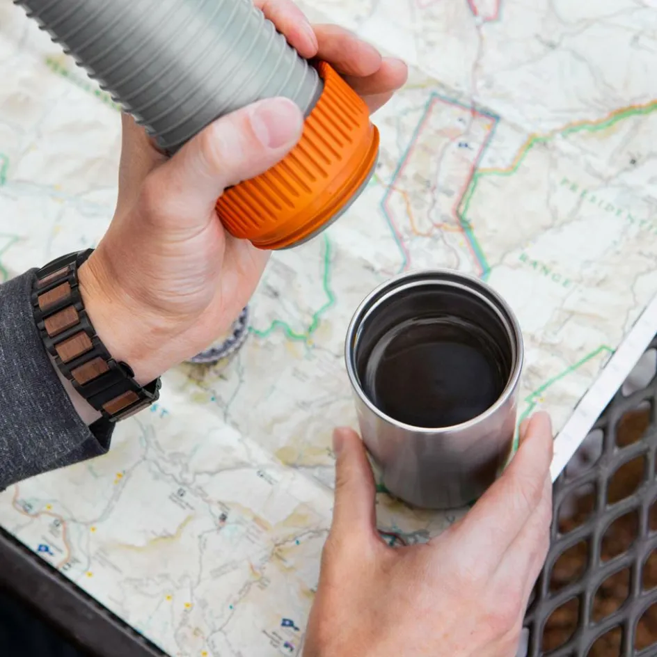 Der Pipamoka ist eine Vakuum-Kaffeepresse mit allem, was du für einen leckeren Kaffee unterwegs brauchst. Inklusive Kaffeefiltereinsatz und vakuumisoliertem Trinkbecher mit Schraubdeckel.