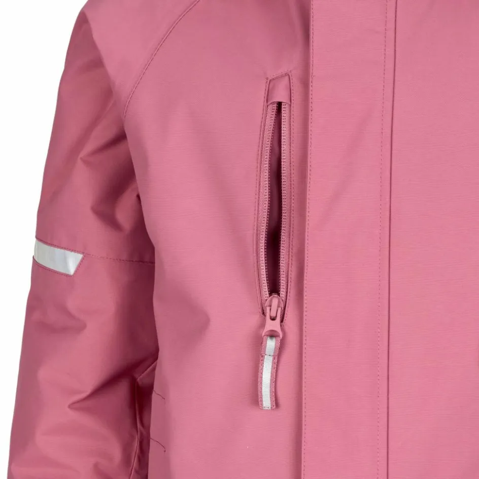 Der Schneeanzug ist mit vielen liebevollen und kindgerechten Details versehen. Die Kapuze ist nicht nur teilelastisch und lässt sich hinten mit einem Klettverschluss anpassen. Sie lässt sich dank Druckknöpfen auch ganz einfach abnehmen und löst sich schnell, falls die Kiddies mal hängenbleiben. Der Kragen und die Ärmelabschlüsse sowie ein Kinnschutz am RV sind mit kuschligem Fleece versehen und sorgen für weiche Komfort. Kälte und Wind werden vom unterlegten und mit einer Windschutzleiste ausgestatteten Front-RV in Schach gehalten. Um den ganz Kleinen das An- und Ausziehen zu erleichtern, ist der Anzug bis Größe 110 mit einem längeren Reißverschluss ausgerüstet.