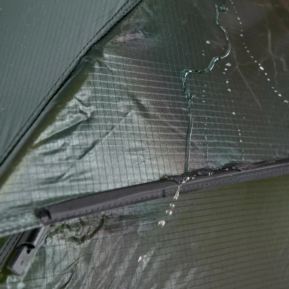 Eine selbststehende Kuppelkonstruktion – dadurch auch in schwierigem Gelände wie bspw. Felsklippen leicht aufzubauen. Stabiler Stand durch die sich in der Kuppel kreuzende 3-Stangen-Konstruktion.