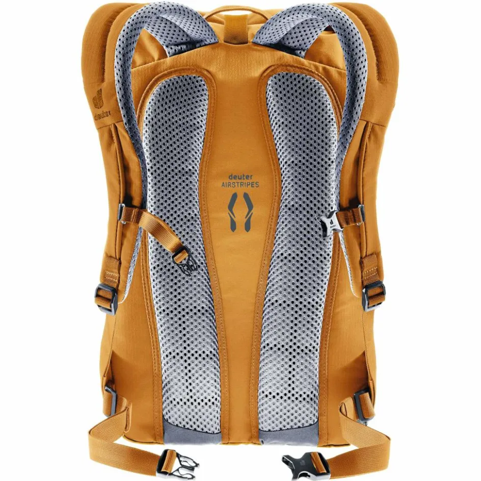 Ein seitlicher RV ermöglicht dir einen schnellen Zugriff auf deinen Laptop. Das geräumige Hauptfach hat einen Rollverschluss, mit dem du das Volumen des Rucksacks regulieren kannst. Zu den Innenfächern gehört auch eine praktische Flaschenhalterung, damit deine Thermokanne immer aufrecht steht. Seitlich am Rücken findest du ein RV-Fach zum griffbereiten Verstauen deines Smartphones.