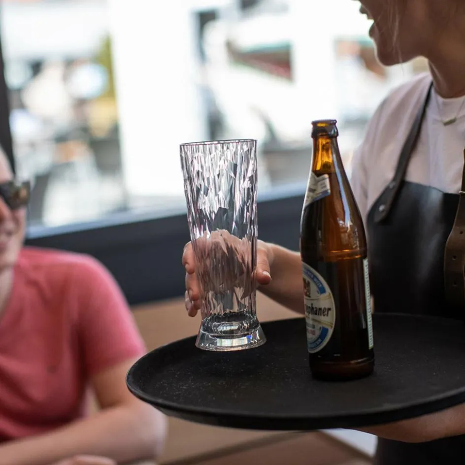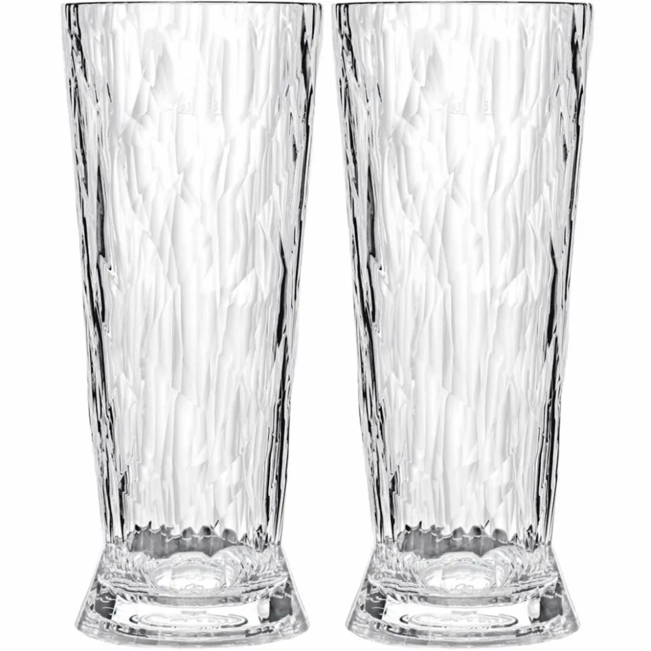 Großes Bierglas-Set aus Koziols Superglas. Sie sind nicht nur extrem robust, sondern besitzen auch eine leicht isolierende Wirkung und behalten ihr Aussehen auch nach langer Nutzungszeit.