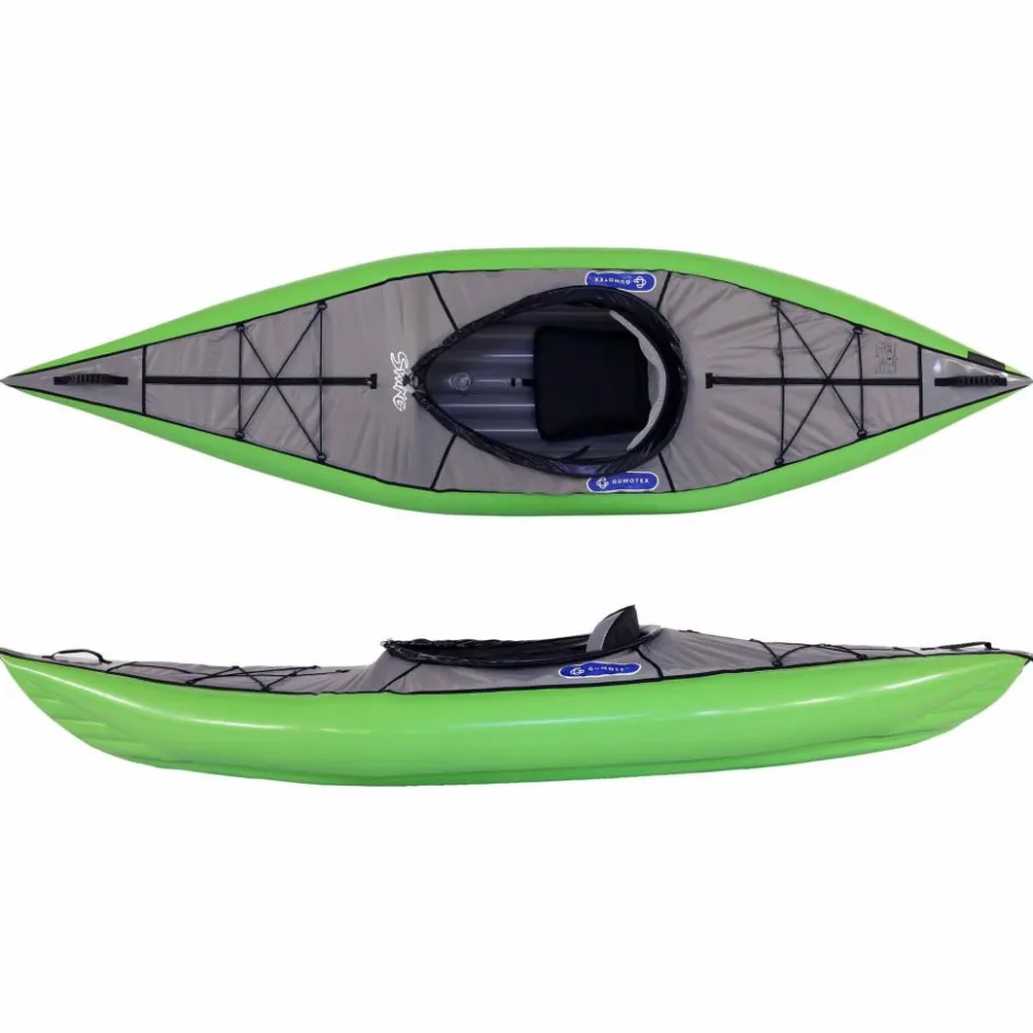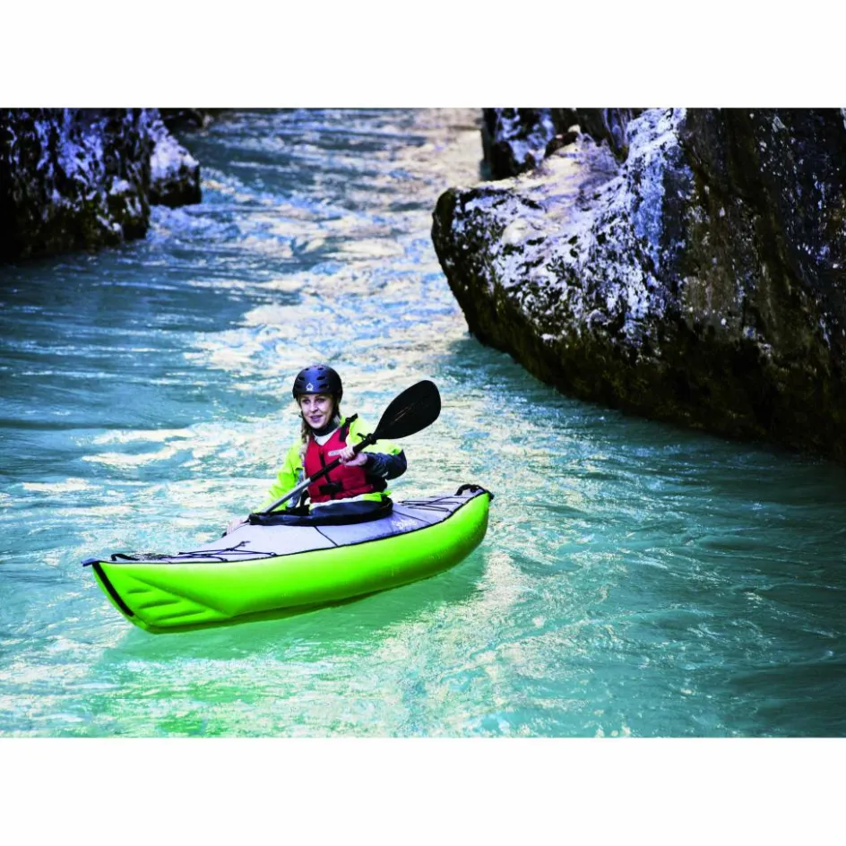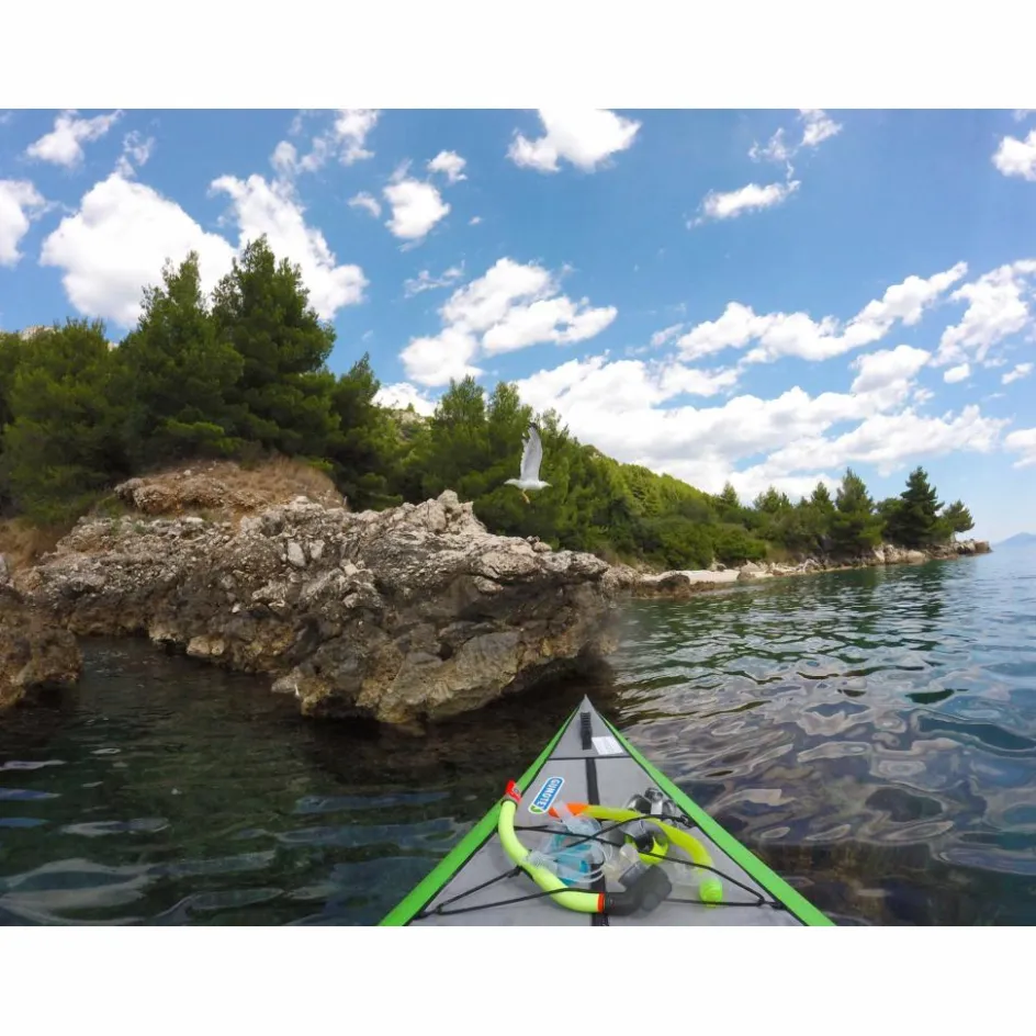 Durch sein geschlossenes Verdeck, eignet sich das Schlauchkajak Swing neben Seen und geschützen Buchten auch für leichtes Wildwasser (bis WW2) und schützt dich und dein Gepäck vor Spritzwasser.