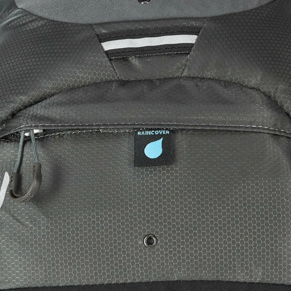 Reflektierende Designelemente, eine Halterung für ein Rücklicht und die integrierte Regenhülle in bunter Farbe sorgen dafür, dass du bei allen Witterungsbedingungen auffällst. Die praktische Helmhalterung zum Durchstecken ist für Helme mit Lüftungslöchern geeignet.