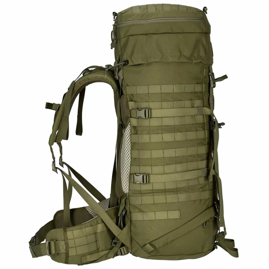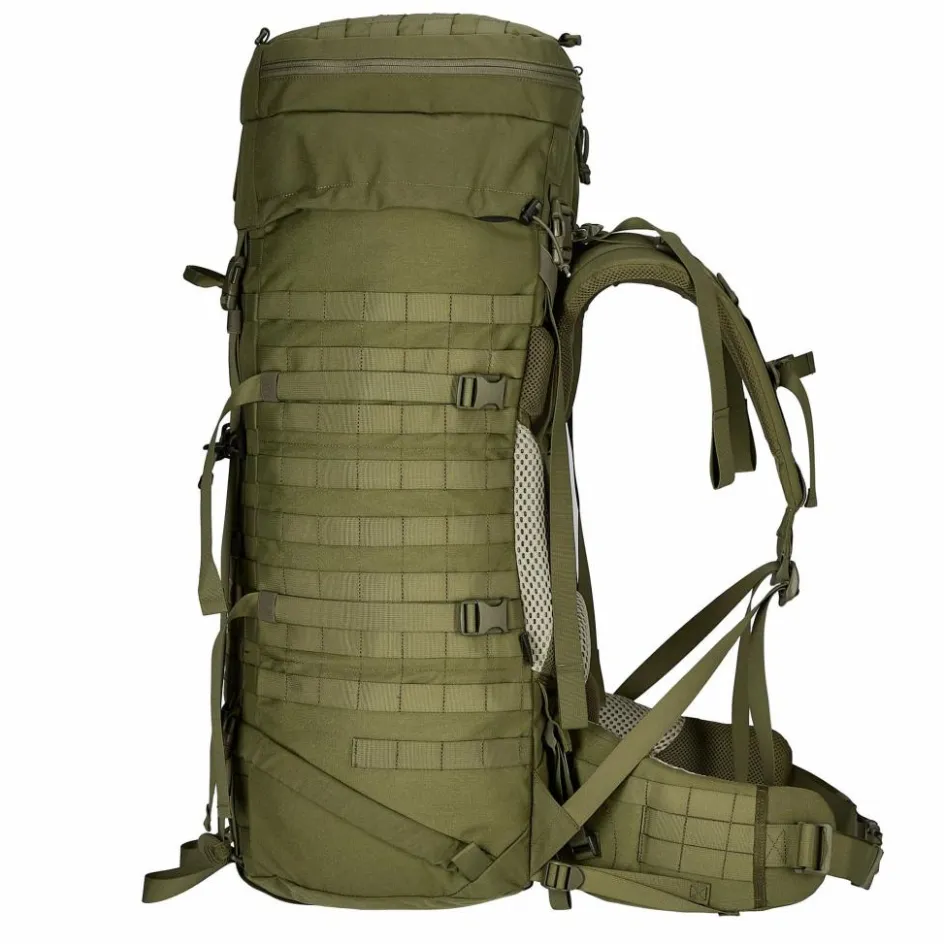 „>Denier Materialstärke. Damit verzeiht der taktische Trekkingrucksack auch Felskontakt und Wege durch dichtes Gestrüpp. Dank des großzügig verteilten MOLLE-Systems können weitere Taschen flexibel und griffbereit außen am Rucksack befestigt werden. So kannst du den Rucksack vor jeder Tour genau auf deinen Einsatzzweck abstimmen und hast schnell benötigte Ausrüstung sofort griffbereit.