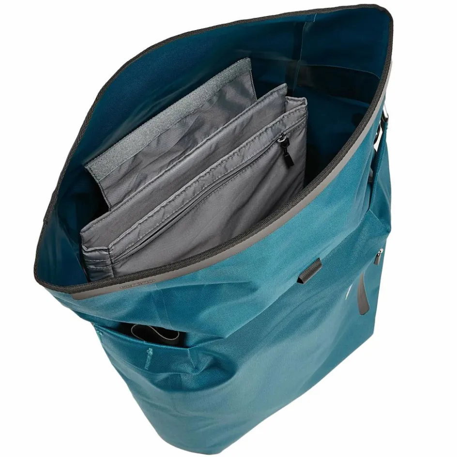 In der Rucksack-Position hat das Flap außerdem noch ein RV-Fach, das du als Rucksack-Vorfach nutzen kannst. An der Seite hat der Rucksack eine Netzaußentasche, im Hauptfach eine Laptop-Innentasche.