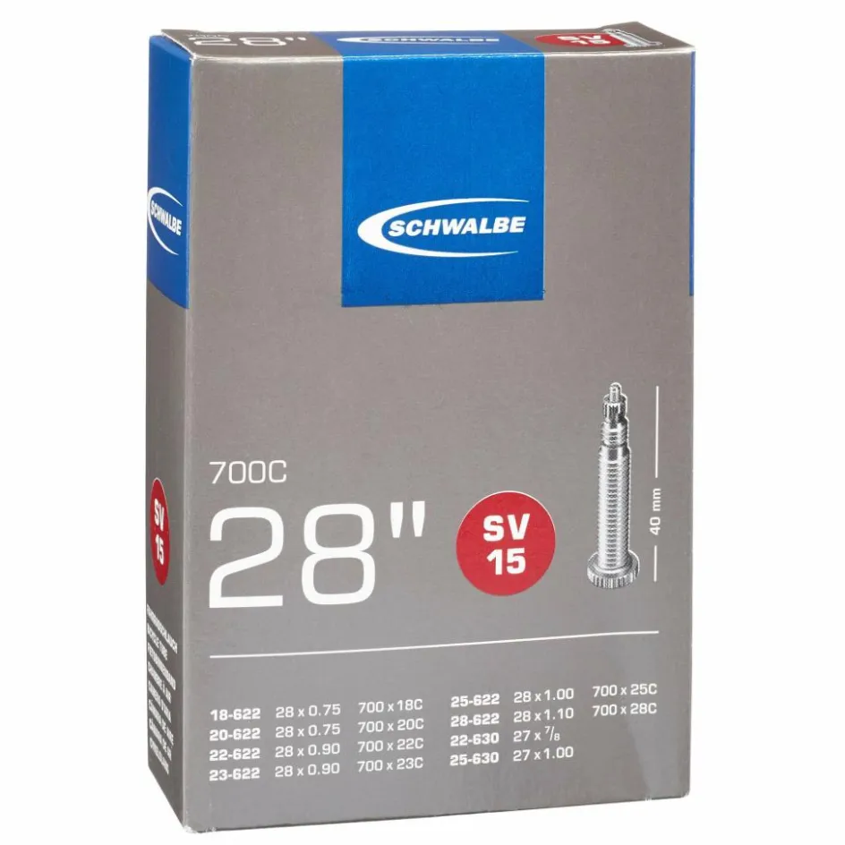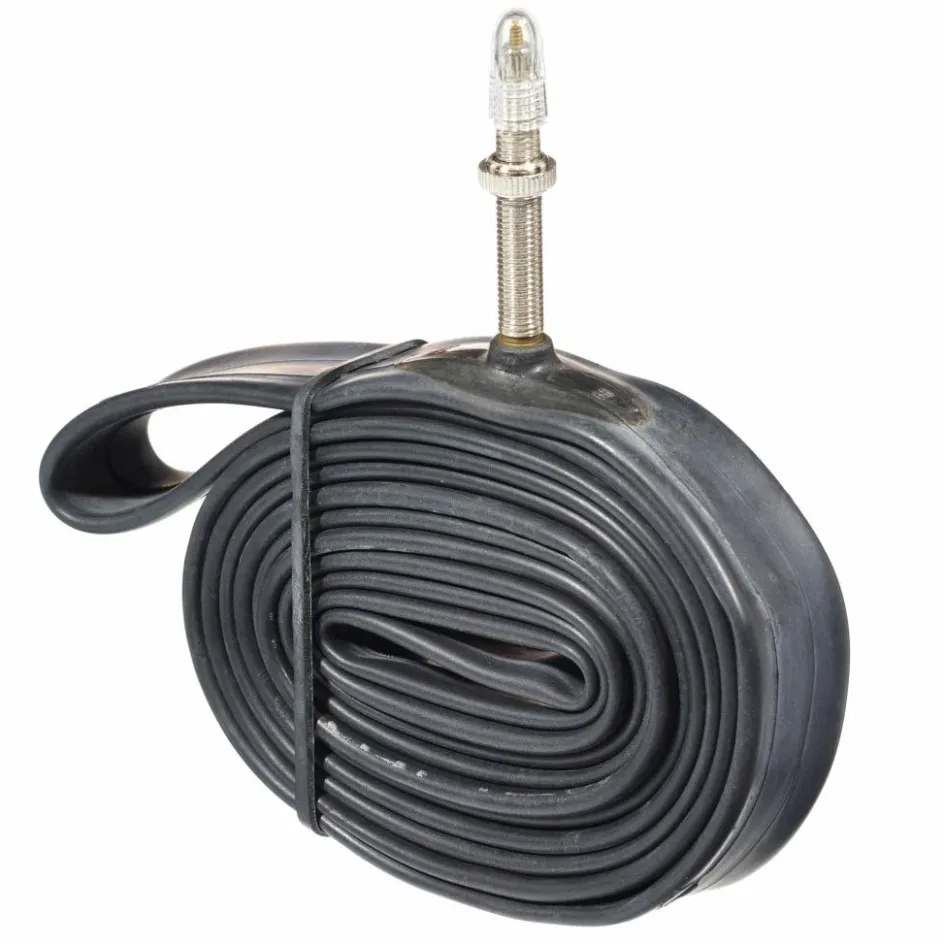 Fahrradschlauch aus einer extrem luftdruckstabilen Gummimischung. Inklusive einvulkanisiertem Sclaverand-Ventil (SV).