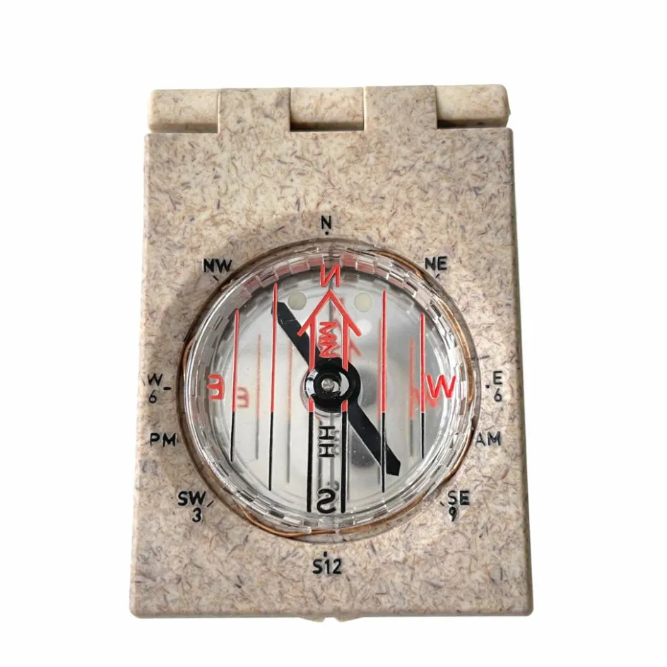 Deckel und Ring des Kompasses bestehen aus Revo-Material, das rund 90 % CO2 Emissionen einspart und aus Post-Industrial-Kunststoff hergestellt wurde.