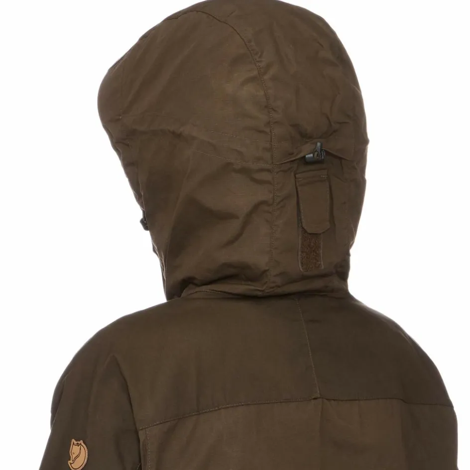 Die Schulterpartie, Kapuze und Rückseite der Ärmel ist aus robustem, mückendichtem G-1000 Original gefertigt. Der Rest der Jacke besteht aus dem sommerlichen, dünneren G-1000 Lite. Beide Materialien sind wind- und leicht wasserabweisend.