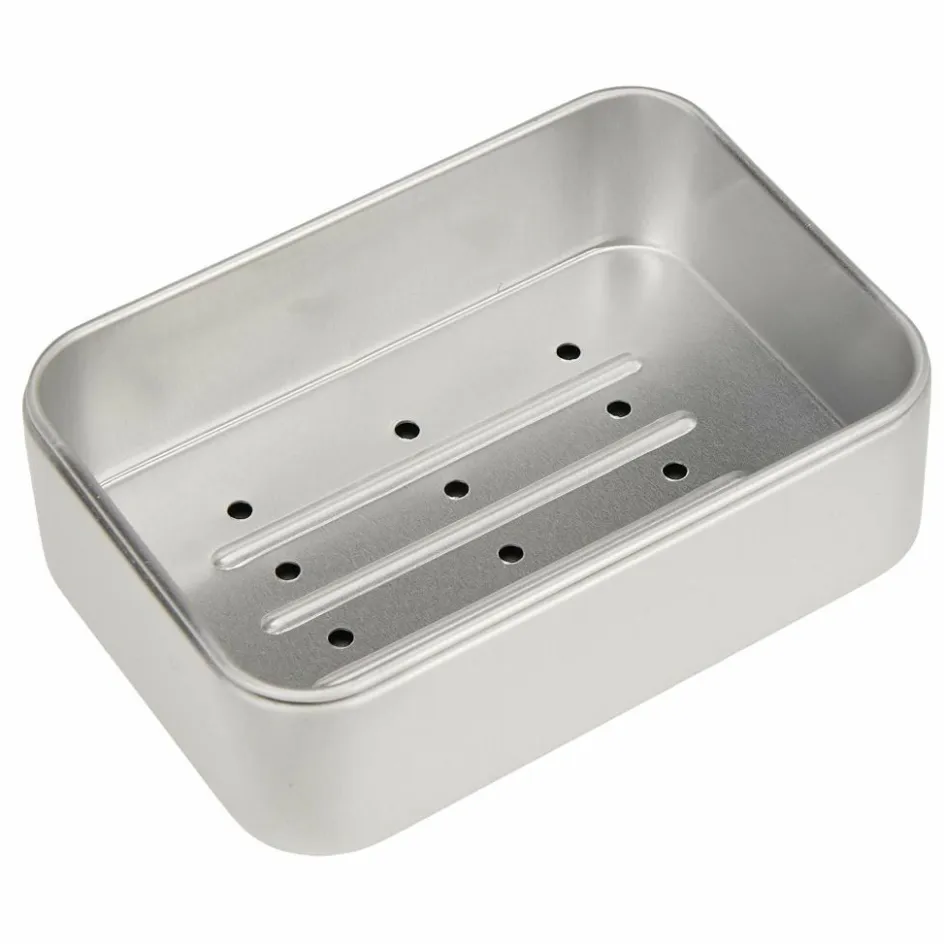 Richtig praktisch: Die rechteckige Seifendose 2-in-1 besitzt ein Abtropfsieb, sodass deine Seife zwischen den Anwendungen trocken bleibt. Sie ist aus rostfreiem Aluminium hergestellt.