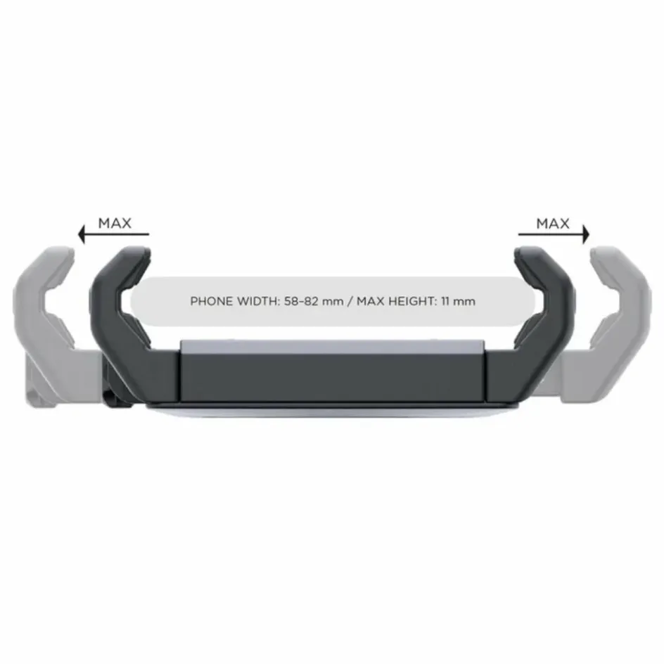 Der Universal-Klemmhalter für Smartphones mit einer Breite von 5,8 cm bis 8,2 cm und einer Dicke bis 1,1 cm. Inklusive Universal Bike Mount, mit dem du dein Handy werkzeuglos am Rad befestigst.