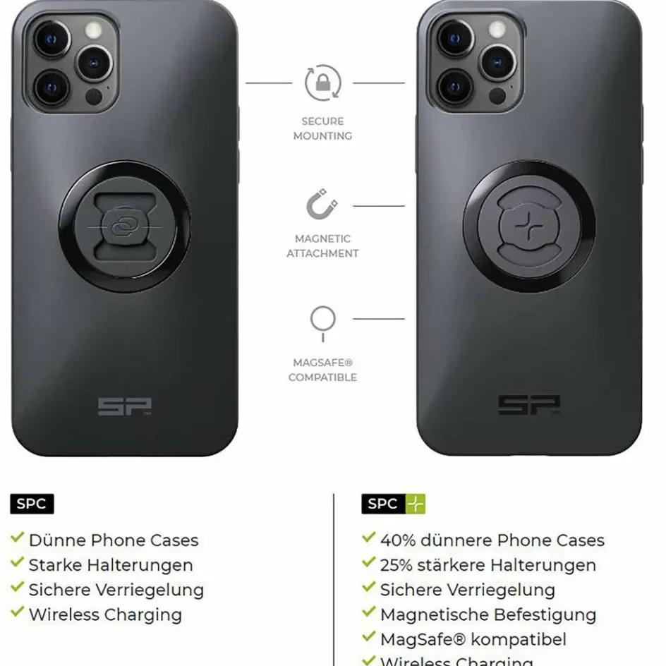 Der SPC+ Halter macht es noch ein bisschen besser: Phone Cases sind mit dieser Technik nochmal 40% dünner, die Halterung ist um 25% stärker. Die sichere Verriegelung sowie das Wireless Charging beherrscht auch diese Konstruktion. Dazu kommt: SPC+ ist Apple MagSafe-kompatibel und bietet dir auch eine magnetische Befestigung.