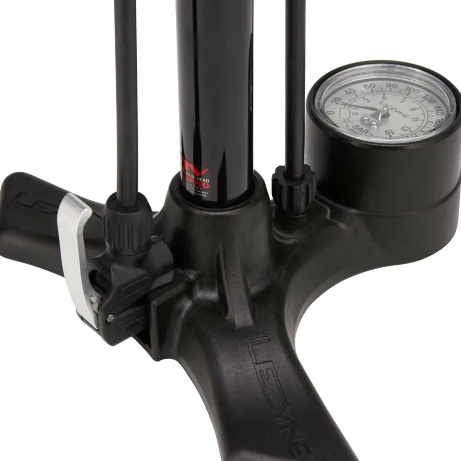 Robuste Stahlstandpumpe für den Heimbedarf. Mit großem Hub pumpt die Macro Floor Drive deine Reifen bis 15,1 bar auf. Der 120 cm lange Schlauch ermöglicht dir auch das Pumpen am Montageständer.