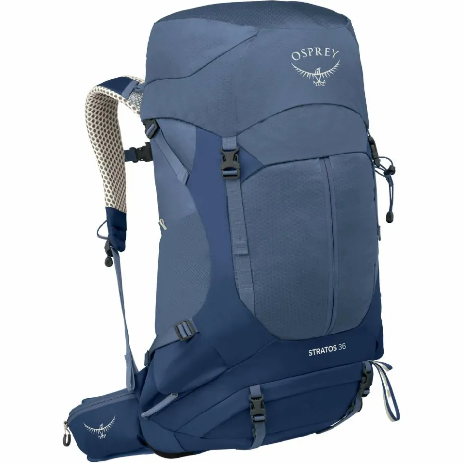 Ein Belüftetes Tragesystem, übersichtliche Fächer und praktische Details wie eine Trekkingstockhalterung am Schultergurt machen den Stratos 36 zum perfekten Begleiter auf deiner nächsten Hüttentour.