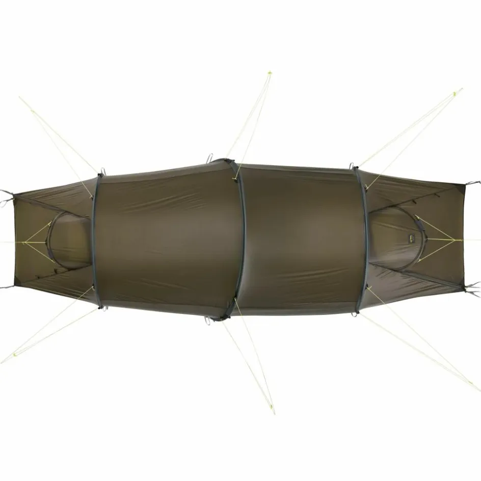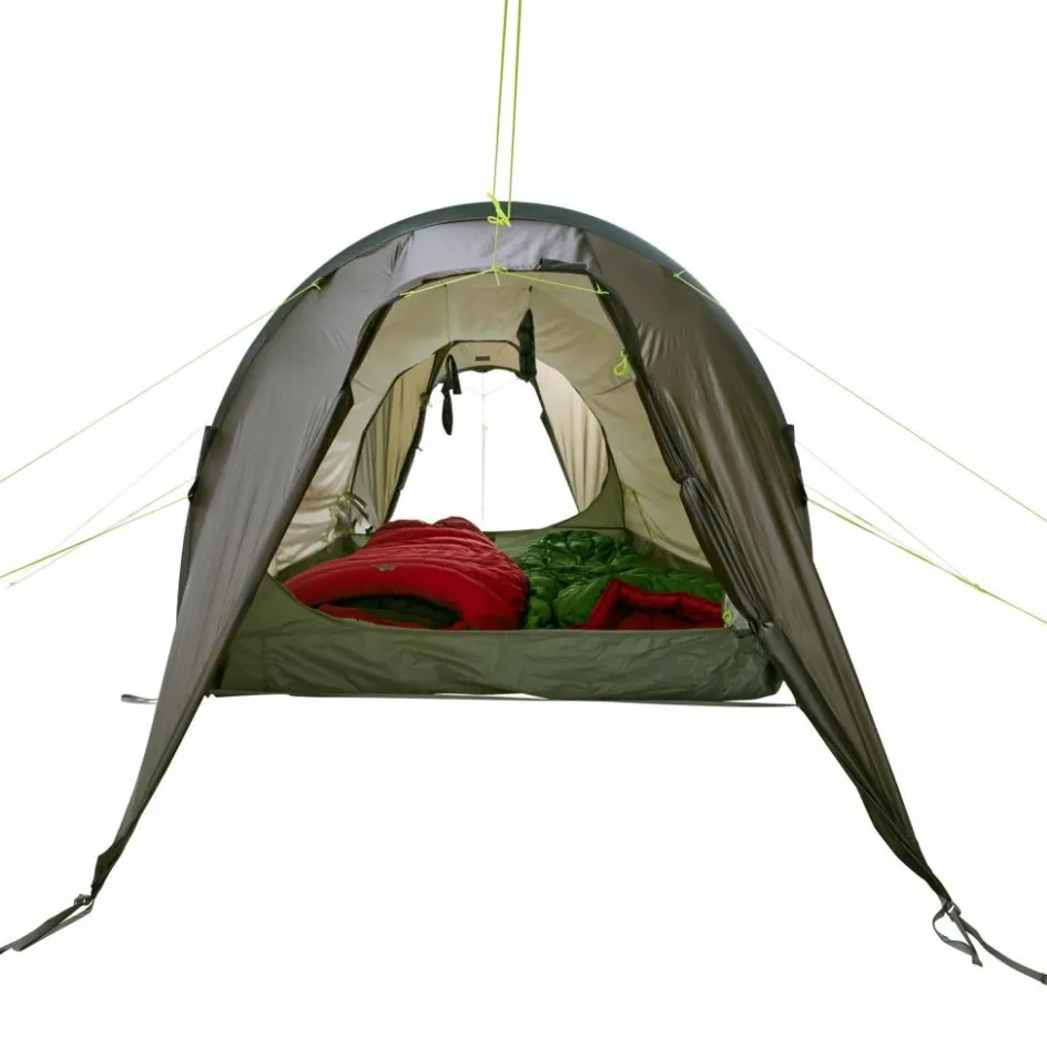 Großes Tunnelzelt mit viel Stauraum in zwei Apsiden. So können selbst auf Touren mit viel Gepäck, wie z. B. beim Paddeln mit Freunden alle Ausrüstungsteile wettergeschützt verstaut werden.