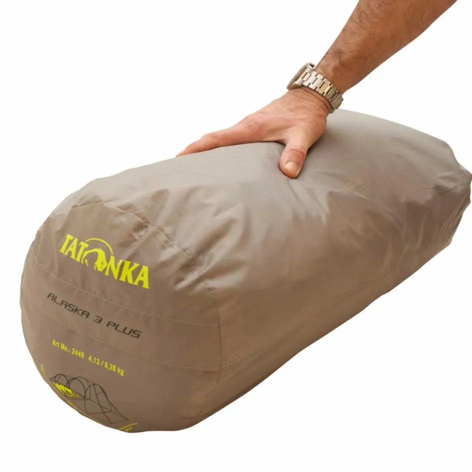 Hochgewachsene Personen finden im Alaska 3 Plus eine passende Behausung. Das Innenzelt ist 235 cm lang und bietet damit eine großzügige Liegelänge. Das Innenzelt kann aus der Apsis oder von hinten betreten werden, was auch die Möglichkeit der Querlüftung erlaubt. So kann eventuell anfallendes Kondenswasser am Morgen schnell abgelüftet werden. Auch sonst bietet es eine komfortable Ausstattung: Das Innenzelt verfügt neben zwei Mesh-Seitentaschen auch über eine Wäscheleine, auf der du deine Kleidung zum Lüften aufhängen kannst.