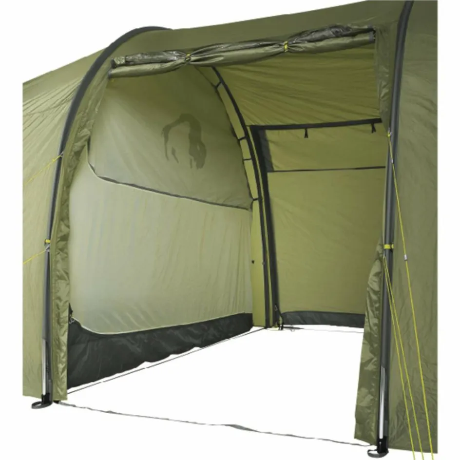 Das Family Trek II ist ein Familienzelt mit Stehhöhe für drei Personen mit extra-großer Apsis. Mit einer Gesamtlänge von 6,70 Meter und der stehhohen Konstruktion ist das Familien-Tunnelzelt Family Trek II ein echtes Raumwunder. Es bietet eine geräumige Schlafkabine für drei Personen und einen äußerst großzügig bemessenen Vorraum, dazu zwei zentrale, gegenüberliegende Eingänge sowie Eingänge an beiden Stirnseiten. Für genügend Licht im Inneren des Zeltes sorgen Fenster in den Seiteneingängen und an den Stirnseiten.