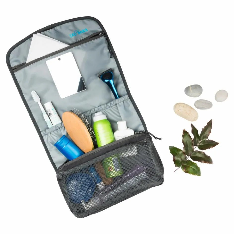 Die Small Travelcare ist eine kleine Kulturtasche, in der du die wichtigsten Hygieneartikel für unterwegs übersichlich verstaust. Mit dem Haken hängst du sie einfach am Handtuchhalter auf.