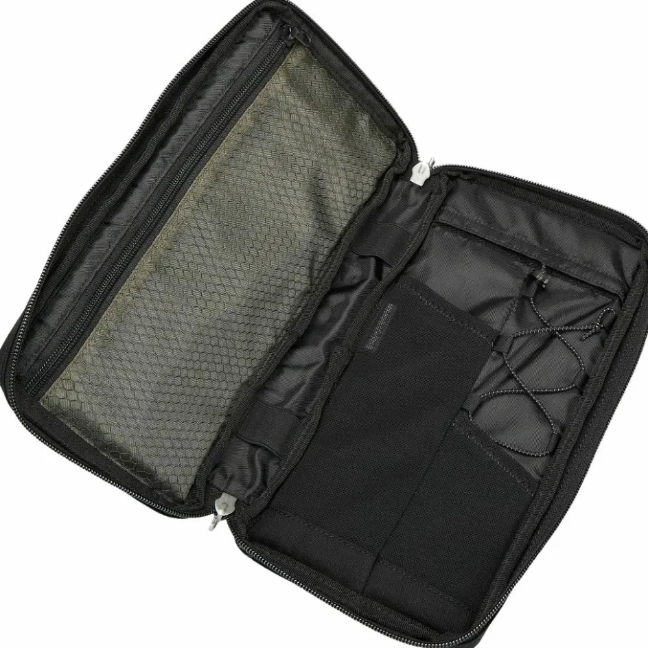Das Innenmaß bietet dir mit 26 x 13 cm genügend Stauraum für diverse Messer und Zubehör. Sie ist so aufgebaut, dass du Zubehör und kleinere Ausrüstungsgegenstände geordnet unterbringen kannst. Im großen Fach (25 x 10 cm) mit YKK Reißverschluss können Kleinsteile aufbewahrt werden. Ergänzt wird sie durch ein großes Netzsteckfach (17 x 7 cm) und ein kleineres Netzsteckfach (10 x 5 cm). Zwei elastische Gurtbänder sowie ein Gummizug mit Tankaverschluss helfen dir dabei, Messer und Zubehör zusätzlich zu fixieren, damit im Transport möglichst wenig verrutscht.