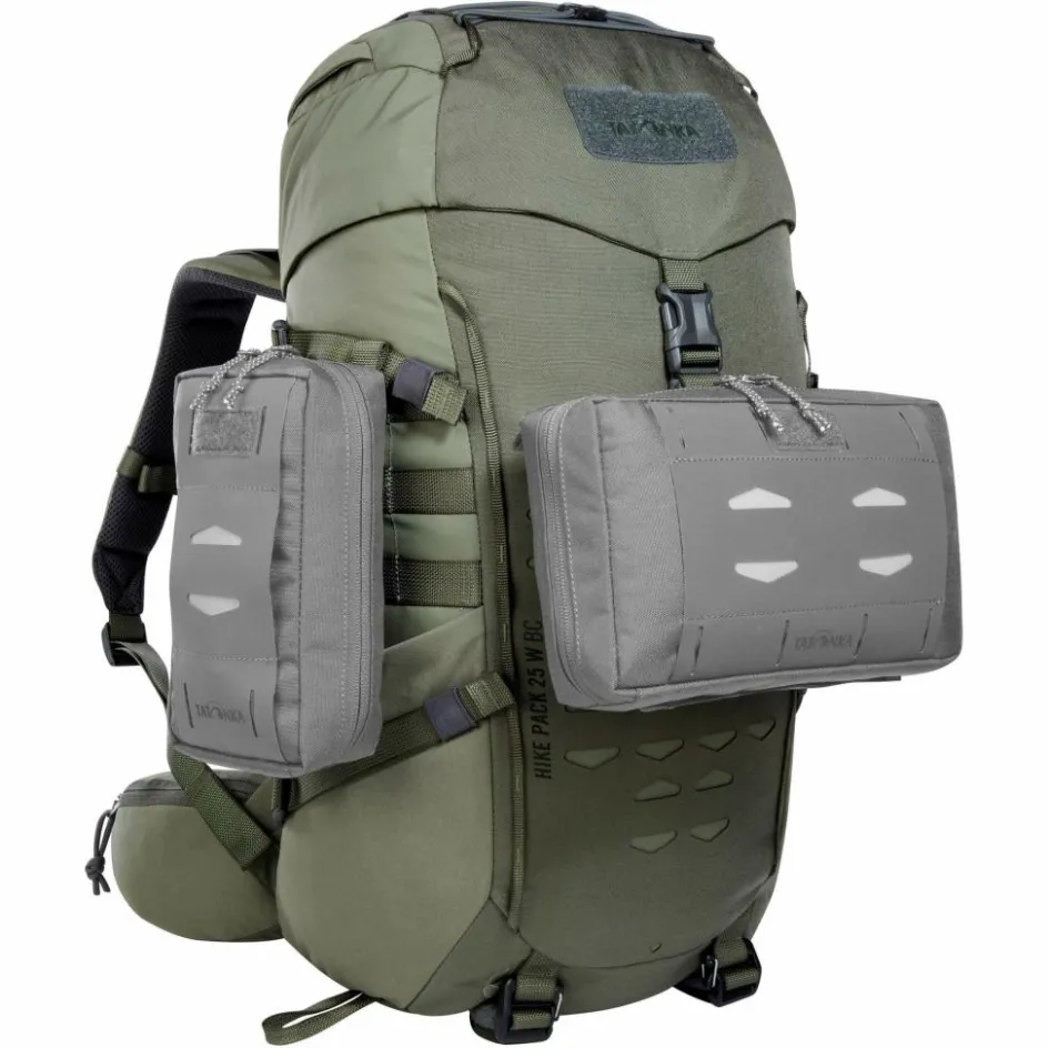 Axt, Messer, Tarp, Paracord, Hobokocher… alles kein Problem für den Hike Pack 25 W BC. Dank großflächig verteilter MOLLE-Schhlaufen an den Seiten und am Hüftgurt, mehrerer Daisychains sowie Lasercut-MOLLE auf der Front kannst du deine Ausrüstung mithilfe von Spanngurten und Materialkarabinern (optional erhältlich, siehe Zubehör) flexibel und griffbereit am Rucksack befestigen. Der Hike Pack 25 W BC lässt sich dadurch auch mit MOLLE-kompatiblen Taschen erweitern und perfekt auf dein individuelles Abenteuer anpassen.