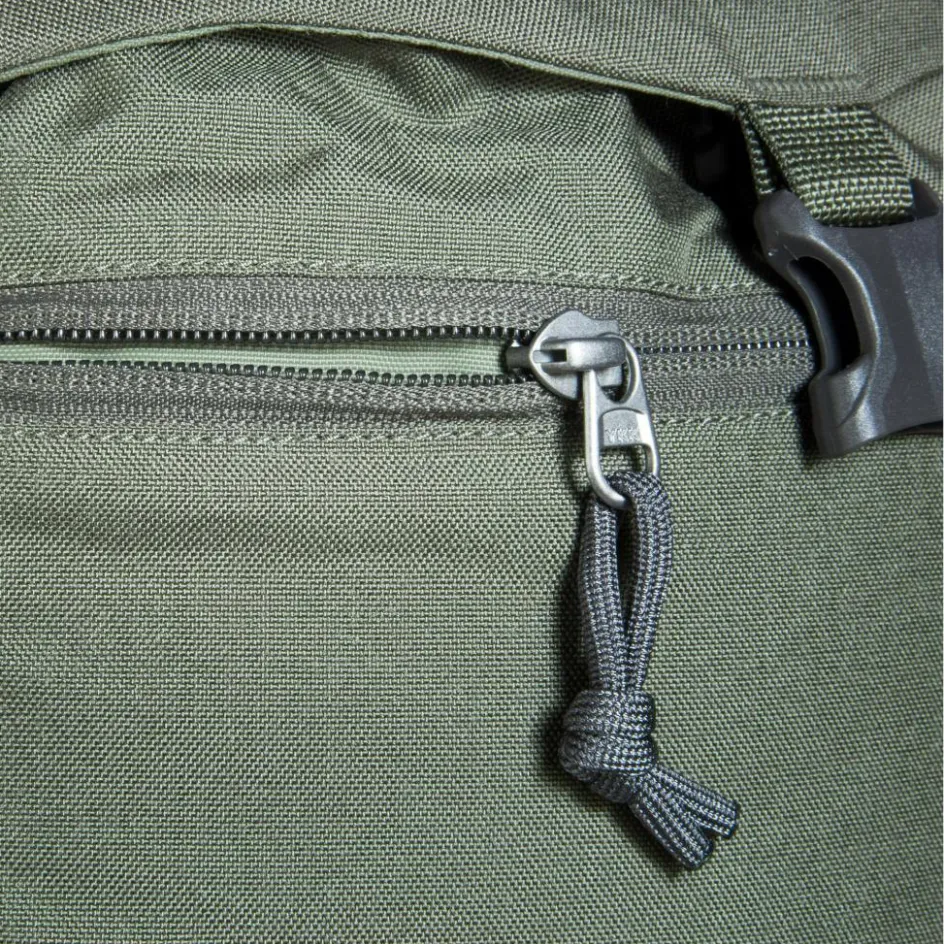 Die klassischen Rucksackfächer bringt der Tagesrucksack natürlich ebenfalls mit: Zwei RV-Fächer im Deckel, zwei Steckfächer an den Seiten, ein großes Steckfach auf der Front und ein RV-Fach auf dem Hüftgurt – mehr als genug Platz um Wasserflasche, Poncho und Co. übersichtlich unterzubringen. Für deine Wanderstöcke gibt es eine seitlich platzierte Schlaufe und die Isomatte ist dank zweier Riemen am Boden ebenfalls sicher verstaut. So lässt der Bushcraft-Spezialist sich auch wunderbar für herkömmliche Wandertouren nutzen.