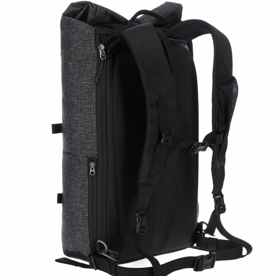 Beim Fliegen und im Zug kannst du die Schultergurte im eigenen RV-Fach unauffällig verstauen. Das macht den ganzen Rucksack schlanker und es kann sich kein Gurt unter dem Sitz oder in der Gepäckablage verhaken. Das seitliche Steckfach kannst du per RV in der Weite verstellen. So liegt es bei Nichtgebrauch unauffällig an.