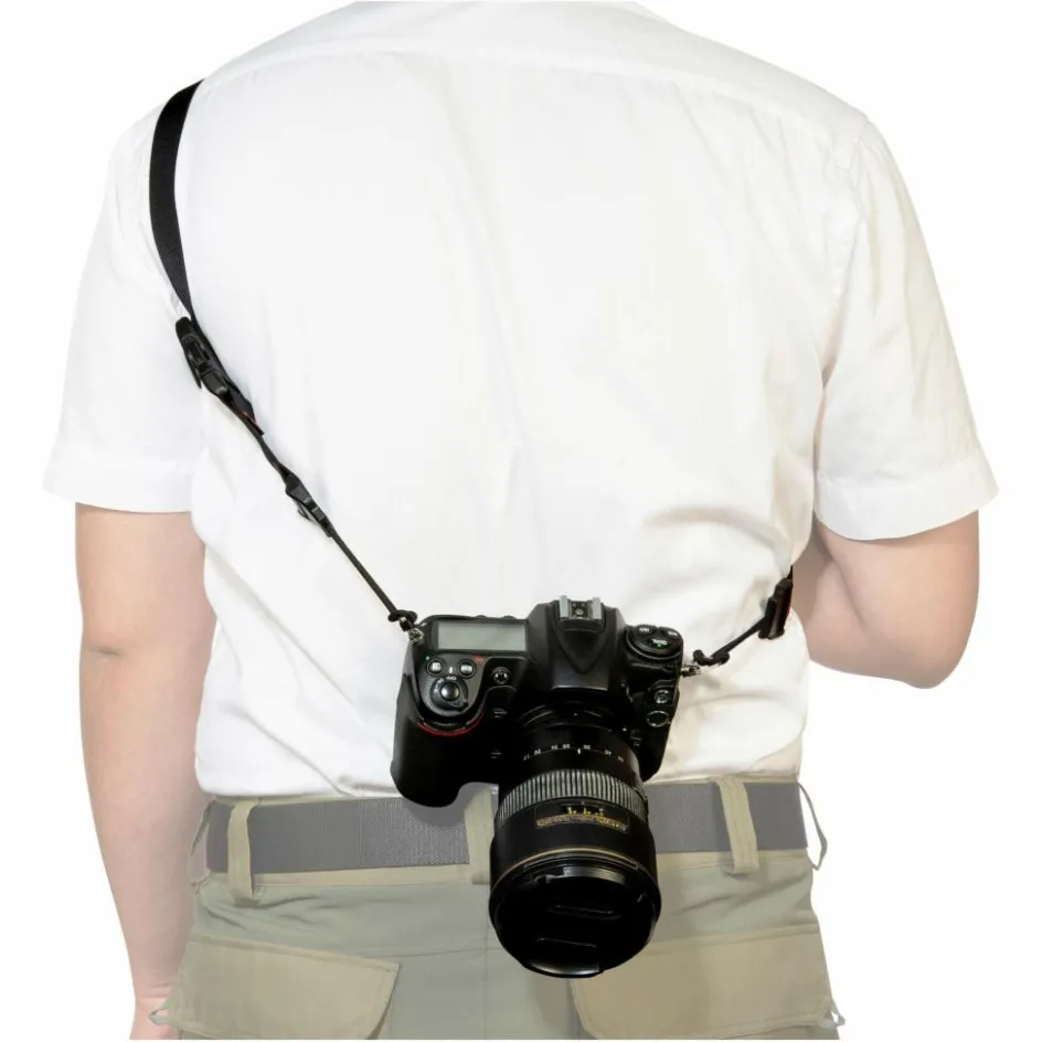 Das Camera Strap Set besteht aus einem verstellbaren Schultertrageriemen mit integriertem Unterarmriemen und integrierter Handschlaufe. Der Unterarmriemen verhindert das Verrutschen der Kamera, wenn sie auf dem Rücken getragen wird, zum Beispiel beim Fahrradfahren.